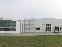 Aufgabenstellung: Trennung zum Bestandsbau durch eine Brandwand. Gebäude als Stahlrahmenkonstruktion mit Thermosandwichfassadenelementen und Dacheindeckung in Stahltrapezblech sowie PUR-Dachdämmung und Foliendach. Beheizung durch Deckenstrahlheizelemente. Bodenbeschichtung mit 2-komponentiger Epoxidharzbeschichtung.