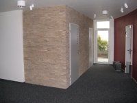 Dimension: Nutzfläche insgesamt 331 qm, umbauter Raum 1.250 qm. Aufgabenstellung: vier Behandlungsräume, ein Prophylaxeraum, Empfangs- und Patientenwartebereich, Röntgenabteilung, eigenes Labor mit angegliederter Zahntechnik sowie Sterilisationsabteilung. Räumlichkeiten für Verwaltung mit Büro und Patientenarchiv, Sozialräume für Mitarbeiter sowie Haustechnik. Baubeginn 06/2011 – Baufertigstellung 02/2012.