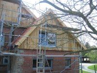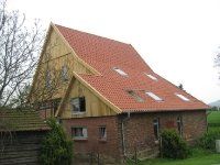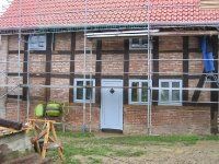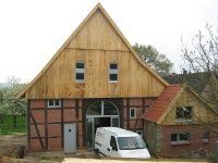 Auch die Fachwerksanierung gehört zu unserem Metier. Hier zeigen wir Ihnen Bilder einer Kernsanierung eines unter Denkmalschutz stehenden Fachwerkhauses in Lemgo Wahmbeckerheide. Unser Architekturbüro übernahm die Planung dieses außergewöhnlichen Projektes, was mit hohen Auflagen wegen des Denkmalschutzes verbunden war. Wir kümmerten uns um die Erneuerung der Schwellhölzer und der unteren Fachwerkstiele. Auch die Mauerwerksausfachungen wurden saniert. Des Weiteren nahmen wir eine Verstärkung der Dachkonstruktion vor und dämmten die Außenwände mit nachhaltigem Strohleichtlehm auf Schilfrohrgeflecht. Die Dämmung der Giebel- und Dachflächen wurde mit Zellulose ausgeführt. Auch eine Rekonstruktion der Fenster sowie der Dachkonstruktion einschließlich der Dachneueindeckung nach denkmalpflegerischen Gesichtspunkten wurde von unseren Architekten geplant. Wir verwendeten Eichenholz und Tonziegel. Auch bauten wir eine Zentralheizung ein und erneuerten die komplette Haustechnik (Elektro-, Sanitär- und Heizungsinstallation). Dieses Projekt wurde mit Fördermitteln des Landes Nordrhein-Westfalen unterstützt.